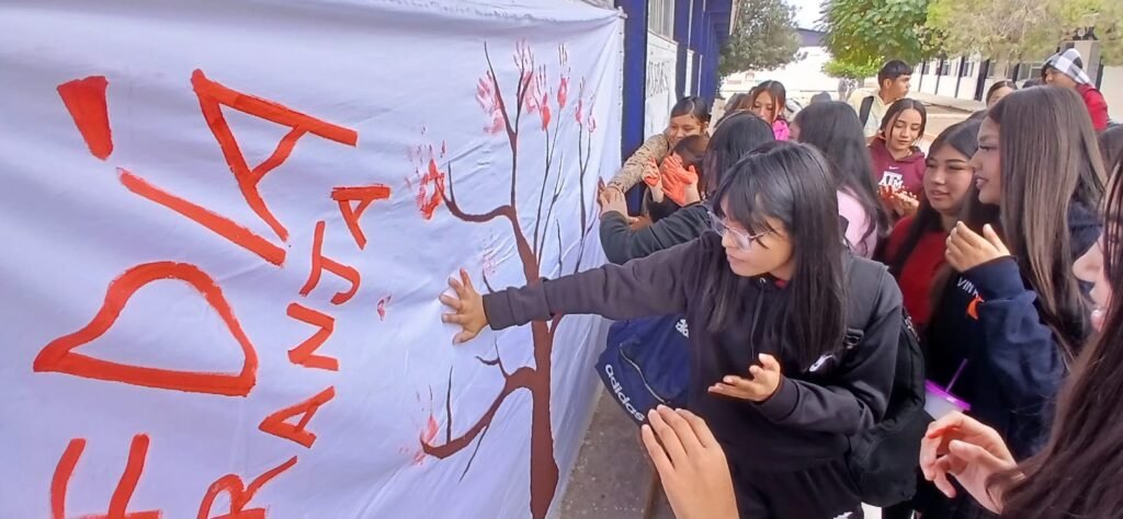 También realizaron dinámicas de concientización entre los estudiantes, como el «árbol de la paz», que fue ilustrado con las manos llenas de pintura de todos los participantes.