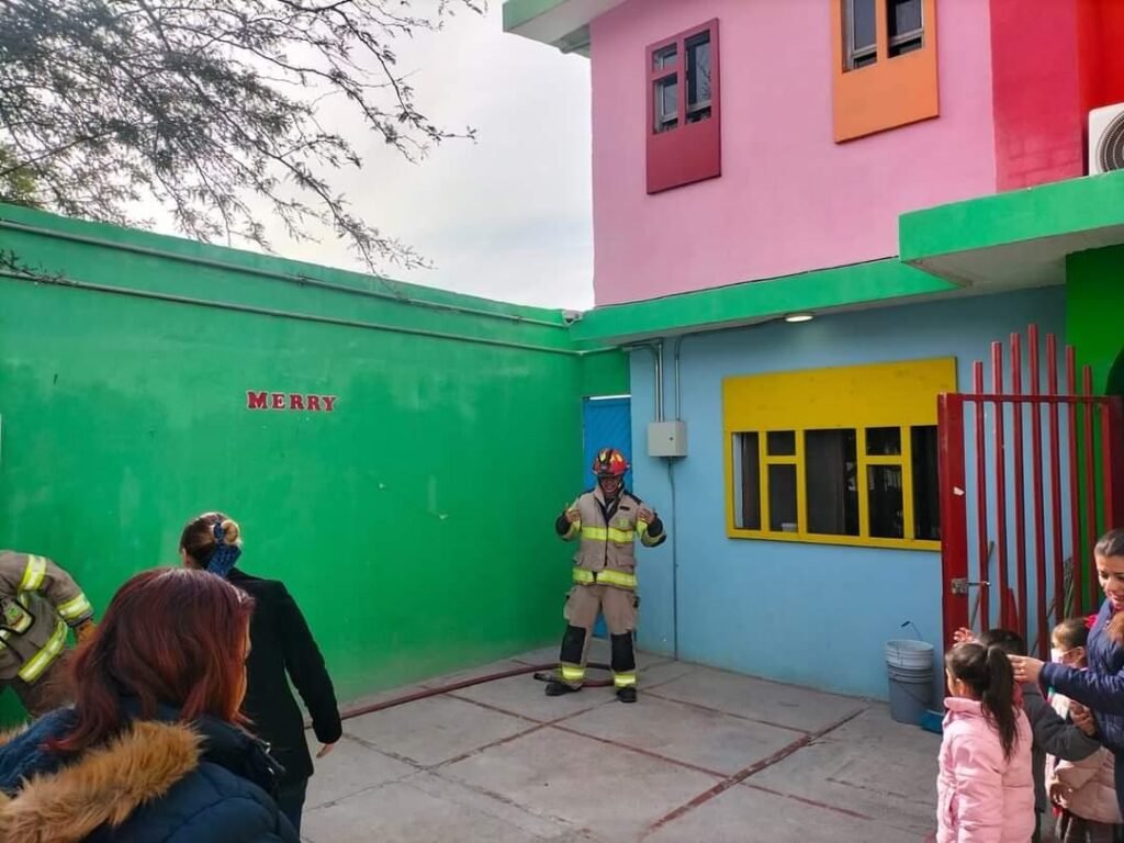 De los cuales son 63 niños y nueve docentes del Colegio Patria de La Laguna, que fueron visitados por los elementos de la dependencia, para llevar la plática de prevención de accidentes en el hogar y una demostración del trabajo de los bomberos.