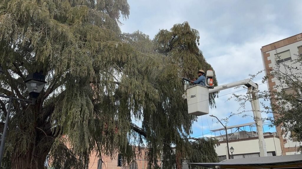 Gómez Palacio, Durango.- Con el objetivo de preservar uno de los principales símbolos naturales e históricos de Gómez Palacio, el Ayuntamiento, a través de la Dirección de Ecología y Protección al Ambiente, puso en marcha un programa especial de mantenimiento integral del emblemático ahuehuete ubicado en la Plaza de Armas, considerado uno de los árboles más antiguos del municipio.
