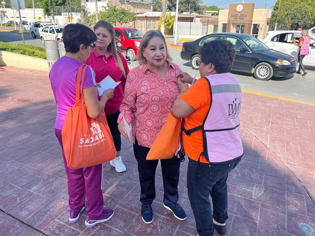 Lerdo, Durango.- El Institutito Municipal de la Mujer en Lerdo, a cargo de la directora María del Refugio Adame Güereca, realizó el crucero naranja en la interconexión del bulevar Miguel Alemán y la avenida Matamoros, para hacer mayor difusión de los programas y servicios gratuitos que el IMM ofrece y llegar a toda la ciudadanía.