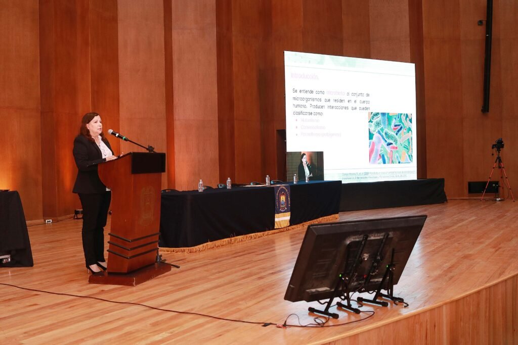 Posteriormente se impartieron las conferencias “Efecto de la dieta en la microbiota y en la salud”, por la Dra. Blanca González Martínez de la Universidad Autónoma de Nuevo León; “El impacto de la investigación en microbiota sobre el desarrollo de productos alimentarios: la industria al servicio de la salud”, a cargo de la Dra. Arlette Santacruz López del Tecnológico de Monterrey y “La seguridad alimentaria y los Derechos Humanos”, por la titular de la Defensoría de los Derechos Humanos Universitarios de la UAdeC, Dra. Magda Yadira Robles Garza.