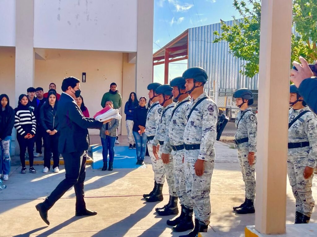 En la ceremonia, efectuada el martes, también participaron el director del plantel, Jaime Jacob Rivas López, así como el agente Hugo del Valle, del 47º Batallón de la Guardia Nacional .