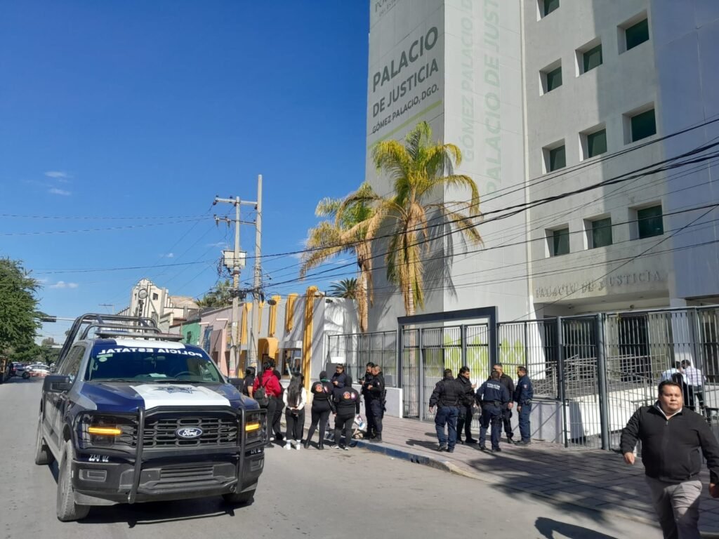 Gómez Palacio, Durango.- La colectiva Revolucionarias de La Laguna, realizaron un plantón en el exterior del Palacio de Justicia y cierre de la avenida Morelos de Gómez Palacio, en espera de que concluyera la audiencia de Alejandro N. presunto violador de la menor DC del municipio de Lerdo.