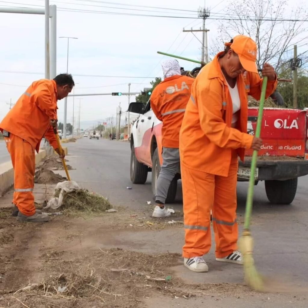 Torreón, Coahuila.- Además de las labores para el retiro de basura y todo tipo de desechos de las vialidades de la ciudad, el personal de La Ola también ejecuta acciones de barrido de tierra y levantamiento de escombro, con el objetivo de mantener los espacios despejados para la seguridad de peatones y automovilistas.
