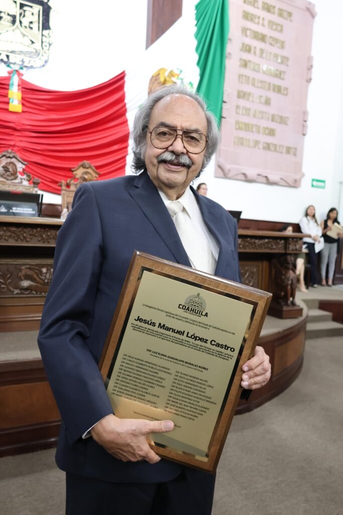 Saltillo, Coahuila.- La Sexagésima Tercera Legislatura del Congreso del Estado, realizó un reconocimiento a Jesús Manuel López Castro por 60 años de destacada trayectoria al frente de la estación de radio XHKS, “La Voz del Tiempo en Saltillo”, así como por su legado en defensa del derecho a la libertad de expresión y el ejercicio del periodismo.