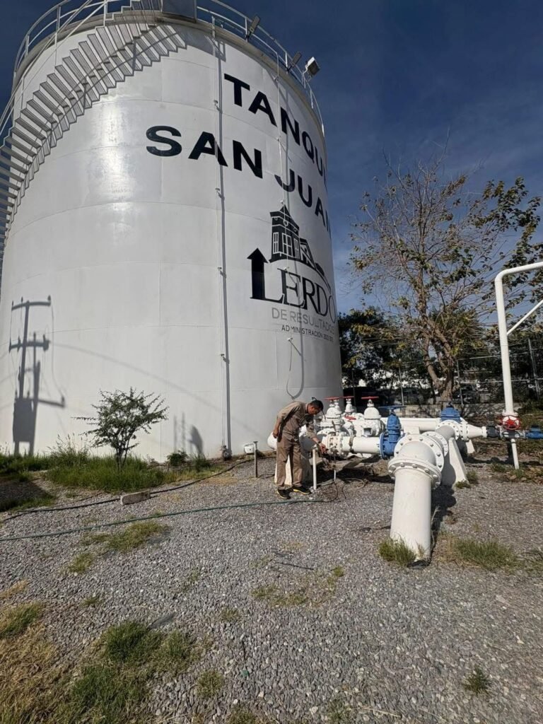 Lerdo, Durango.- El Sistema de Agua Potable y Alcantarillado de Lerdo (SAPAL), a través de su Departamento de Cloración, mantiene labores permanentes de supervisión en pozos y megatanques del municipio, con el propósito de garantizar que el agua distribuida a la población cumpla con los estándares de calidad y las normas sanitarias vigentes.