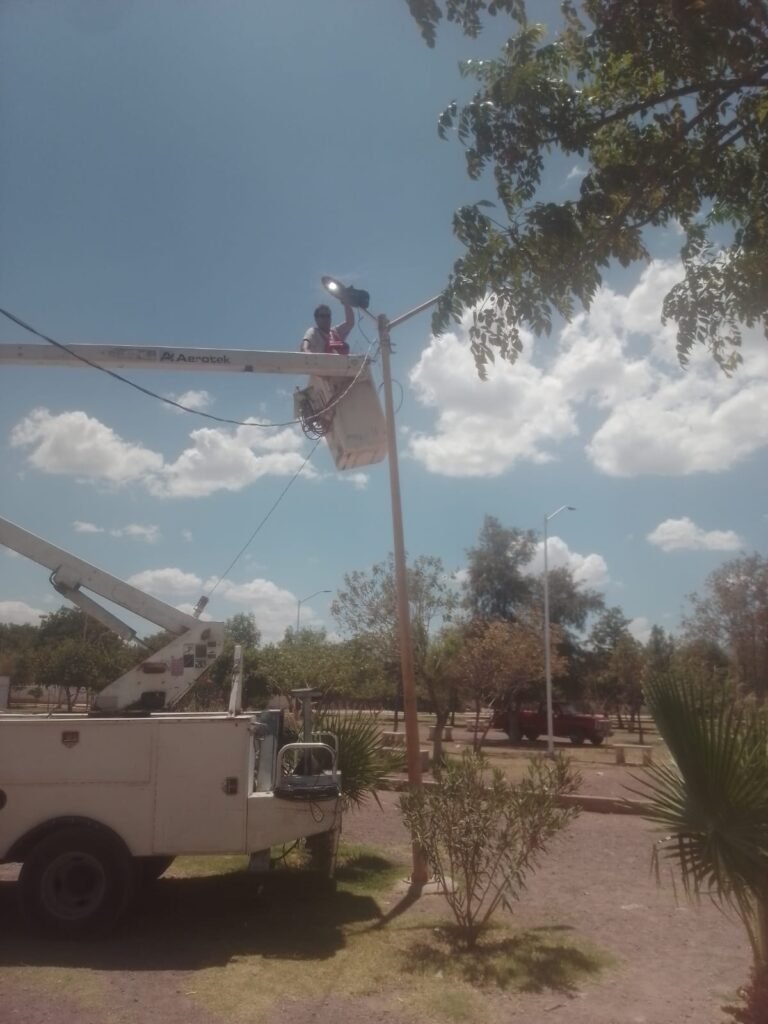 Lerdo, Durango.- Atendiendo el compromiso de la actual administración pública que dirige el Presidente Municipal Homero Martínez Cabrera, la dirección de Servicios Públicos, por medio del departamento de Alumbrado Público, dio continuidad a los trabajos de interconexión y reposición de luminarias en el parque Vivero Forestal Lerdo “Las Auras”, para brindar espacios dignos y adecuados a la ciudadanía y así fortalecer el tejido social.