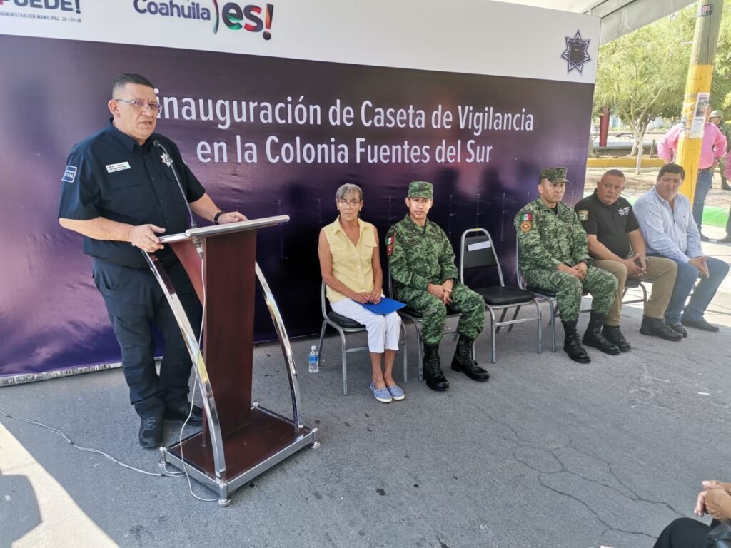 Torreón, Coahuila.- La novena caseta de vigilancia puesta en operación en la actual administración está ubicada en la colonia La Fuente y beneficiará aproximadamente a 30 mil habitantes del sector, según informó el Comisario César Antonio Perales Esparza, titular de la Dirección de Seguridad Pública Municipal (DSPM).