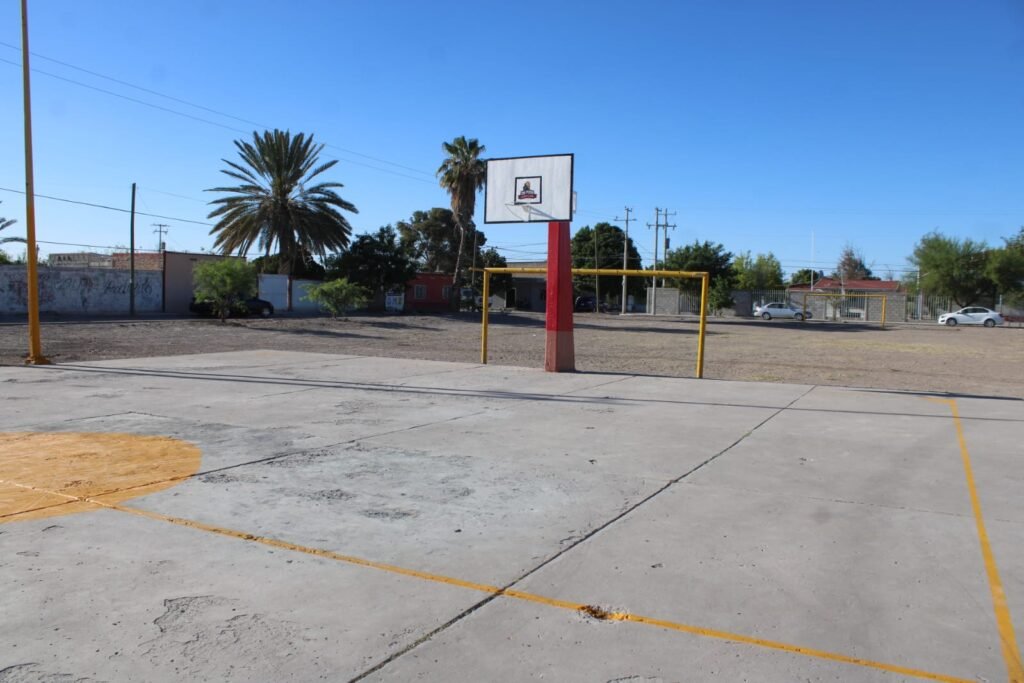 La directora de Servicios Públicos, María del Carmen Escareño Beltrán, detalló que los trabajos incluyeron la rehabilitación de la cancha con pintura en líneas y estructuras, mantenimiento de tableros de basquetbol, instalación de juegos infantiles y colocación de nuevas luminarias, estas últimas a cargo del área de Alumbrado Público, lo que permitirá mayor seguridad y uso del espacio durante la noche.