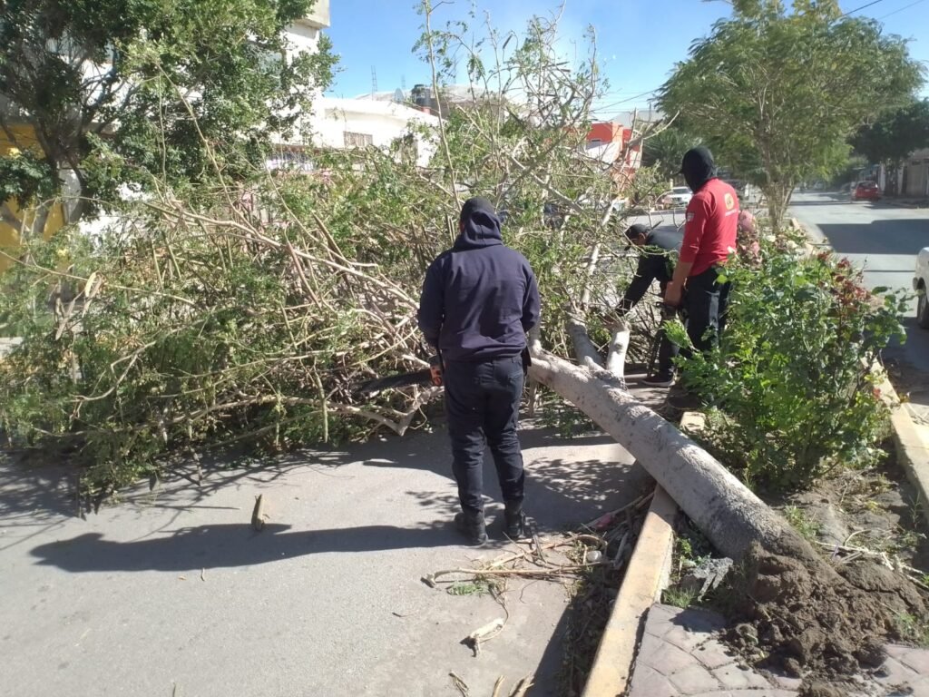Entre los acontecimientos, se reportó la caída de siete árboles en diferentes puntos de la ciudad, como colonia Tepozcali; av. Coronado y c. Guerrero; Paso del Norte, col. Centauro del Norte; av. Juárez entre Hidalgo y Guerrero; calle Privada del Carmen, por la c. Bravo; col. Centro; ejido Juan E. García en E.S.T. 65, y calle Justo Sierra, Col. 5 de mayo.