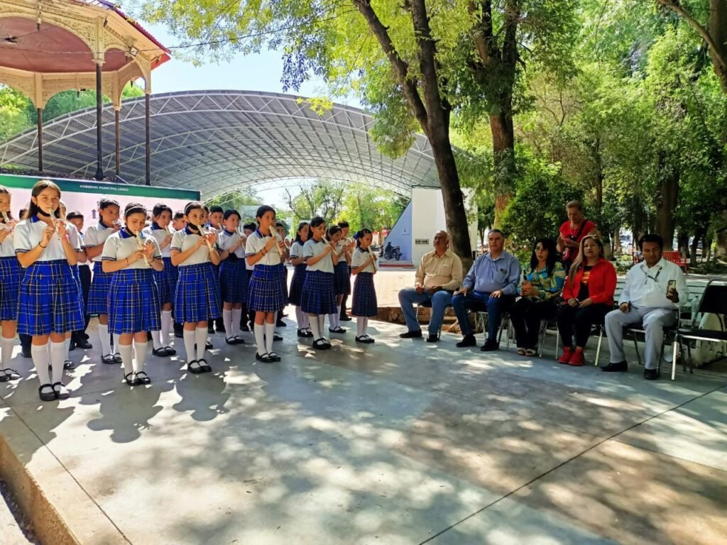 En seguida, los alumnos de la escuela Manuel José Ortiz, dirigida por la Maestra Silvia Muñoz, participaron con el canto y toque de flauta con la melodía “El Himno de la Alegría”