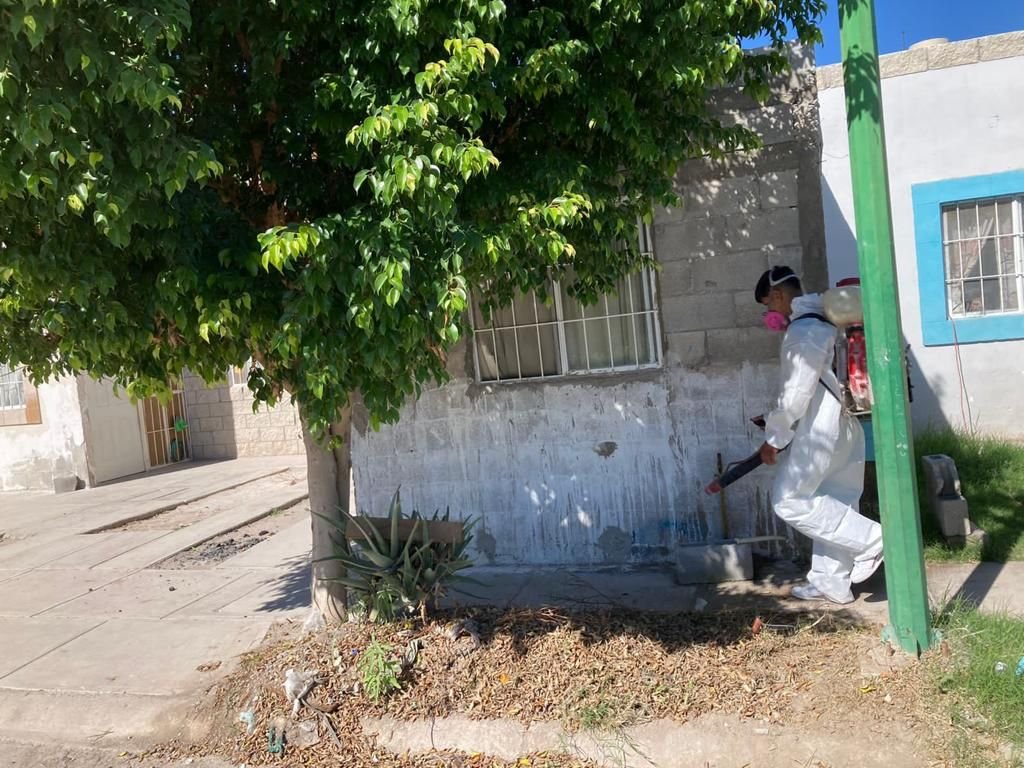 Mencionó que las acciones de fumigación en los últimos cinco días se han extendido a colonias como Los Portones, Jardines Las Etnias, Residencial del Norte, Sección 38, Hogares Ferrocarrileros, Loma Real V, Nueva Laguna Norte, Jacarandas, Quintas La Perla, Rincón la Merced, así como a los espacios públicos, Centro Cultural y Deportivo “La Jabonera, Canal de la Perla y Bosque Urbano.