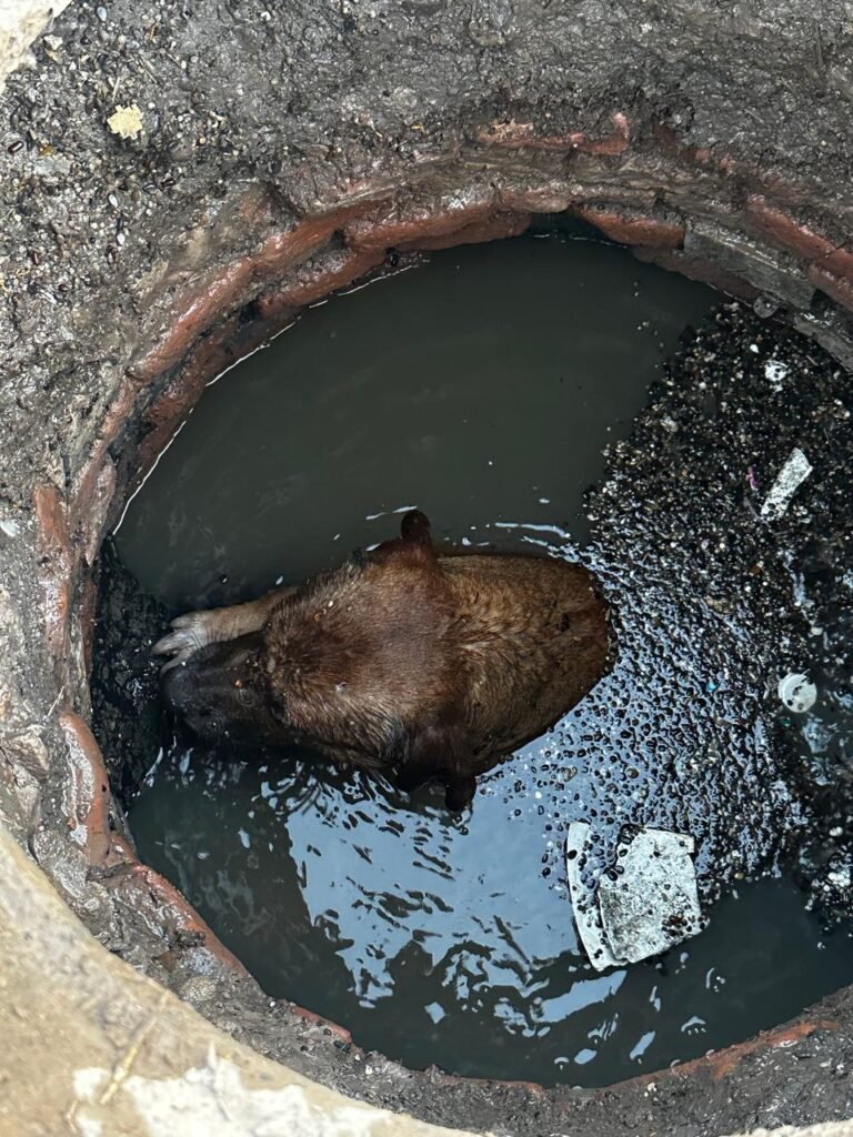 Detalló que el reporte fue recibido a través de la línea directa de emergencias, por lo que de inmediato se movilizó la unidad CB-18 al lugar. Al arribar, el personal del Cuerpo de Bomberos realizó las maniobras correspondientes para salvaguardar la integridad del animal, logrando sujetarlo con cuidado y extraerlo de la alcantarilla, evitando que sufriera lesiones mayores.