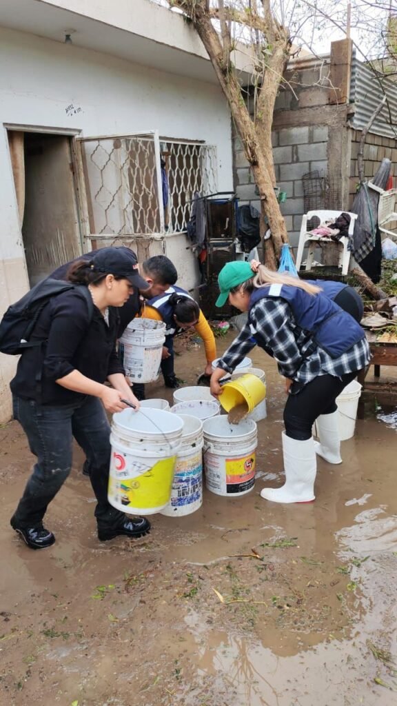 Como parte de las acciones implementadas, cuadrillas de SAPAL brindan atención directa a viviendas afectadas por inundaciones, apoyando en el retiro de agua y en labores de limpieza, con el propósito de que las familias puedan recuperar sus espacios en el menor tiempo posible.