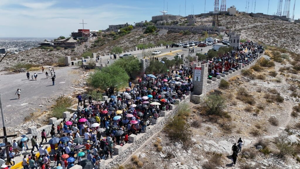 Como parte de las celebraciones de Semana Santa, miles de personas se congregaron por la mañana en el Cerro de las Noas, en Torreón, para presenciar el tradicional Viacrucis, una de las representaciones más significativas de la fe católica en la región.