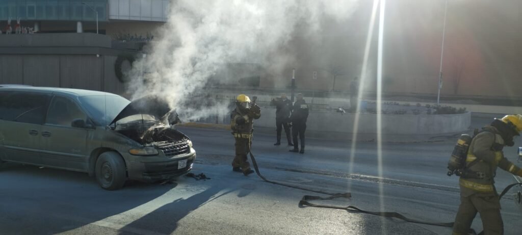 Al llegar al sitio, los apagafuegos detectaron que la camioneta se incendiada en la parte del motor.