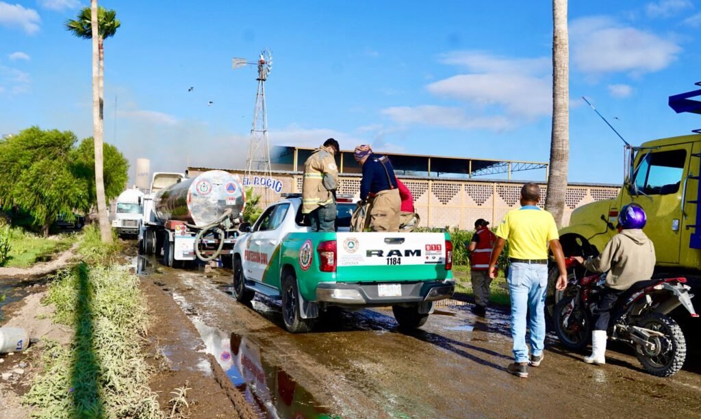Gómez Palacio, Durango.- La solidaridad de Gómez Palacio se hizo presente con el municipio de Matamoros, Coahuila, y sus bomberos acudieron a apoyar en el control del incendio que desde el pasado jueves se registra en la Granja El Rocío, localizada en el ejido Compuertas.