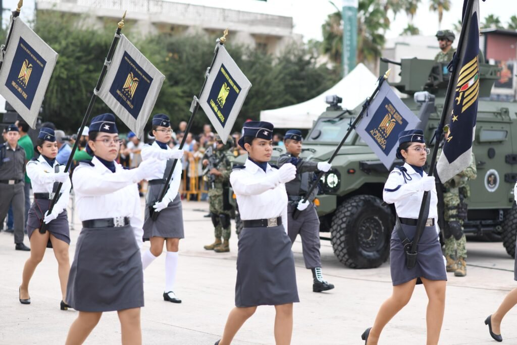 El contingente estuvo integrado por parte del Ejército y la Fuerza Aérea Mexicana, elementos de la Secretaría de la Defensa Nacional (SEDENA), Guardia Nacional; así como de Seguridad Pública, Tránsito Municipal, Agrupamiento de Bomberos y Protección Civil; planteles educativos, Pentatlón y del Agrupamiento Montado.