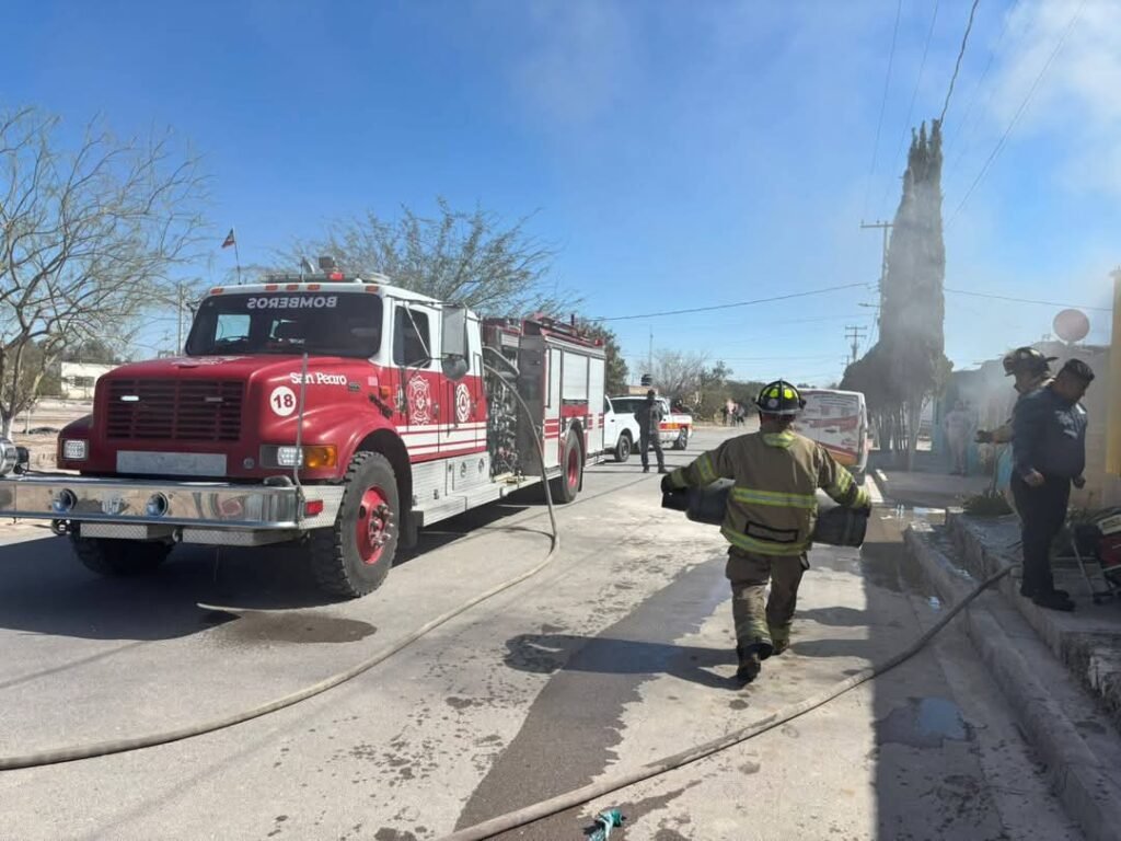 San Pedro, Coahuila.- Elementos del Grupo de Reacción Inmediata, de Bomberos y de Protección Civil atendieron una fuga de gas en un domicilio del ejido Nueva Candelaria, evitando que la situación se extendiera y pusiera en mayor riesgo a los habitantes del lugar.