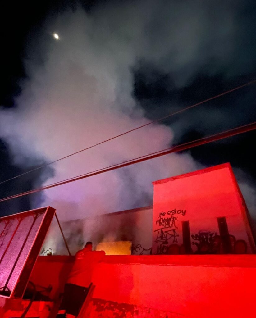 Al arribar, los elementos detectaron que el incendio se originaba en la planta alta del edificio, por lo que procedieron a realizar las maniobras correspondientes. Utilizando una escalera para el acceso, el personal ingresó con una manguera de 15 metros, logrando sofocar el fuego mediante el uso de aproximadamente 7 mil litros de agua.