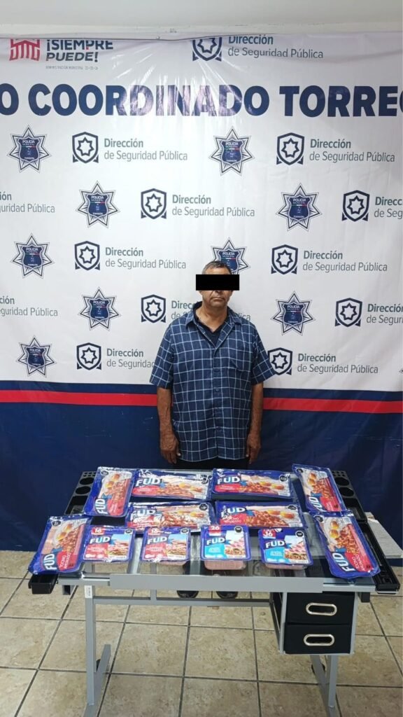 Derivado de los hechos, la Policía de Torreón le aseguró 8 paquetes de tocino ahumado, 2 paquetes de jamón de pavo y 1 paquete de jamón de cerdo.