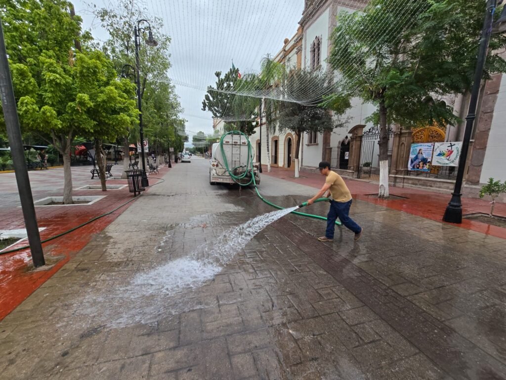 Lerdo, Durango.- Al concluir cada uno de los eventos programados durante las Fiestas Patrias en el municipio de Lerdo, cuadrillas de la dirección de Servicios Públicos llevaron a cabo intensas labores de limpieza en distintos espacios públicos, con el objetivo de mantener una ciudad ordenada y en óptimas condiciones para sus habitantes y visitantes.