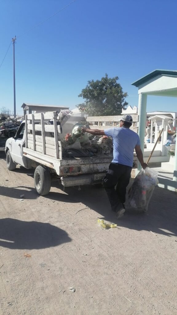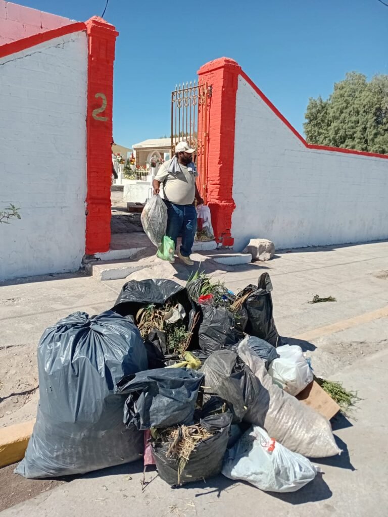 María del Carmen Escareño Beltrán, directora de Servicios Públicos, detalló que debido a la gran cantidad de familias que acudieron a visitar las tumbas de sus seres queridos, se generó una considerable acumulación de residuos, lo que hizo necesaria una intervención inmediata para restablecer el orden y la buena imagen del lugar.