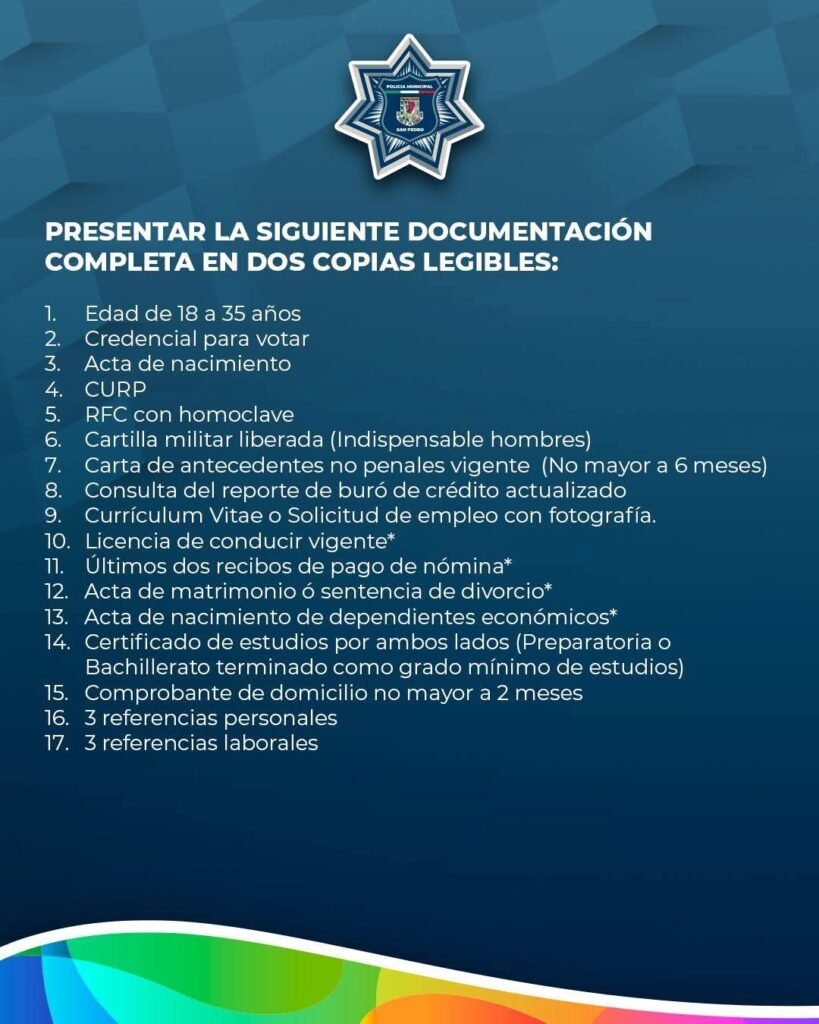 San Pedro, Coahuila.- El Gobierno Municipal continúa con la convocatoria para formar parte de la Dirección de Policía Preventiva Municipal, mediante el ingreso a la Academia de Formación Policial.