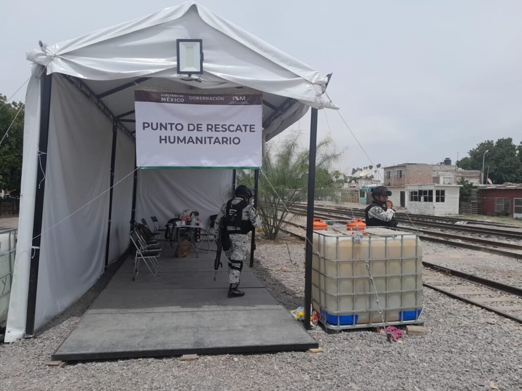 Justo este miércoles el Instituto Nacional de Migración, coloco un «punto de rescate humanitario» a un costado de las vías, donde permanecen los elementos de la SEDENA, Guardia Nacional y Migración, las 24 horas del día, en permanente vigilancia, de las vías del tren, realizando en ocasiones algunas detenciones de migrantes que intentan abordar el ferrocarril, desconociéndose a donde son trasladados.