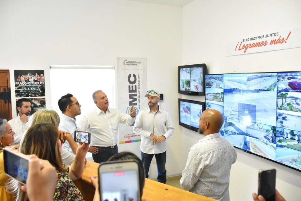 Durante la reunión, Jorge Mario García Chávez, presidente de Fraccionamientos Organizados al Oriente de Torreón A. C., explicó que el Programa de Monitoreo, Enlace y Comunicación (POMEC), es una iniciativa de los vecinos, mediante la cual se mantiene comunicación directa entre las casetas del sector y con la Policía Municipal, a través de este sistema de videovigilancia en las principales calles y avenidas.