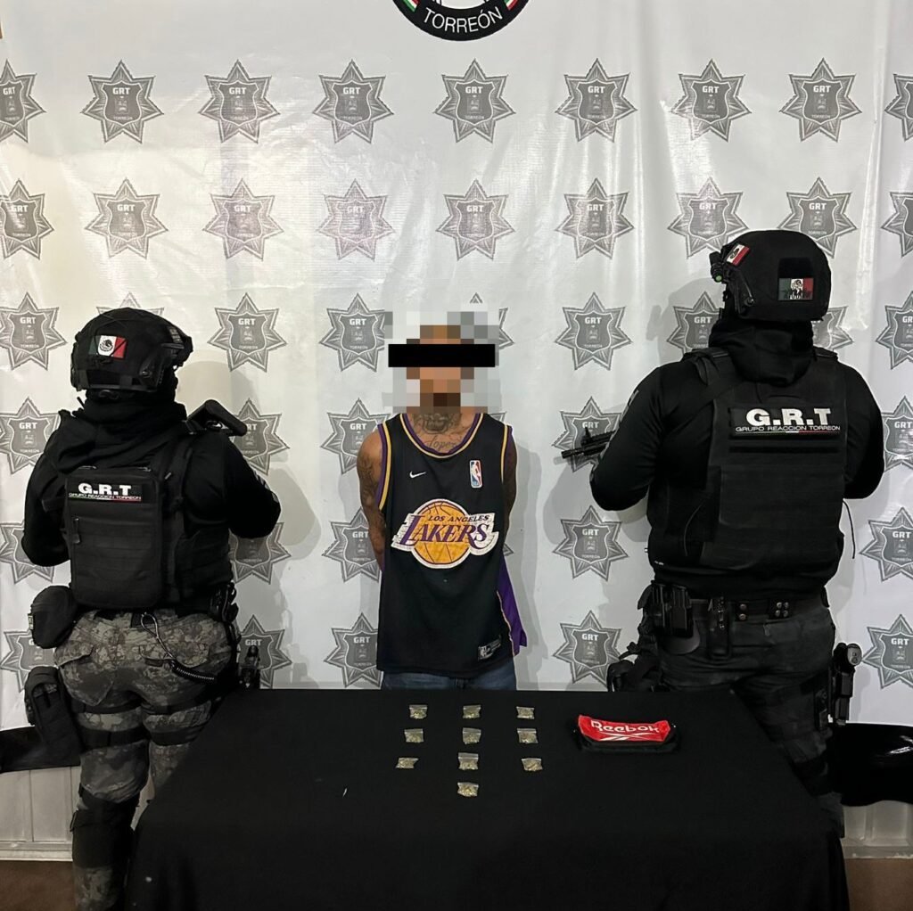 Torreón, Coahuila.- Detectado en calles de la colonia Zaragoza Sur con una lapicera que en su interior contenía bolsas plásticas con mariguana, un sujeto fue detenido por elementos de la Dirección de Seguridad Pública Municipal (DSPM).
