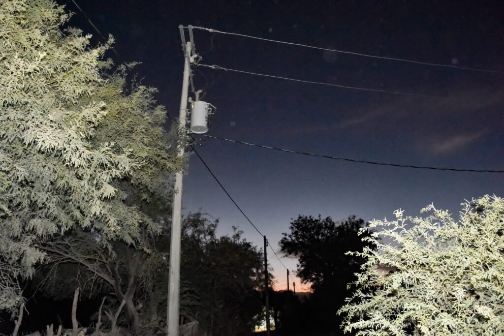 Lerdo, Durango.- El Presidente Municipal Homero Martínez Cabrera, llevó a cabo un recorrido nocturno para supervisar la obra de ampliación de la red eléctrica en el ejido 21 de Marzo, sector corrales. Durante la visita, estuvo acompañado por las autoridades rurales locales, incluyendo al jefe de cuartel de la comunidad, Raúl Pérez; el comisariado ejidal, Ismael Gress, y el director de Obras Públicas, Antonio Sánchez.