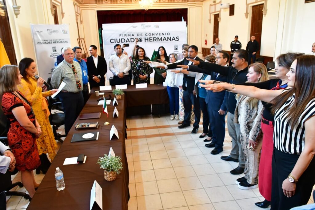 Lerdo, Durango.- La tarde de este sábado, la Presidenta Municipal Susy Carolina Torrecillas Salazar encabezó la firma del Convenio entre Ciudades Hermanas con Las Cruces, Nuevo México. El evento se realizó en el Salón Azul de la Presidencia Municipal.