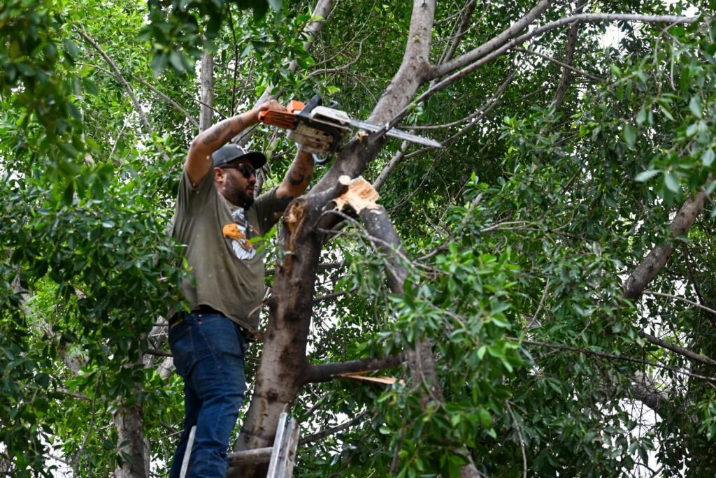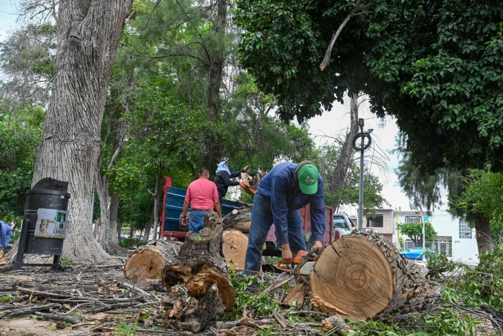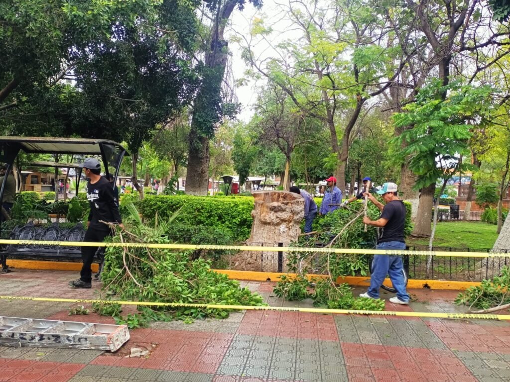 Lerdo, Durango.- En respuesta a reportes ciudadanos, la Coordinación de Protección Civil y Bomberos, en conjunto con las direcciones de Medio Ambiente y Servicios Públicos de Lerdo, llevaron a cabo el día de ayer, jueves 20 de junio, la tala de ramas de un árbol en la Plaza de Armas, acción destinada a mitigar riesgos para la comunidad durante las intensas lluvias registradas.
