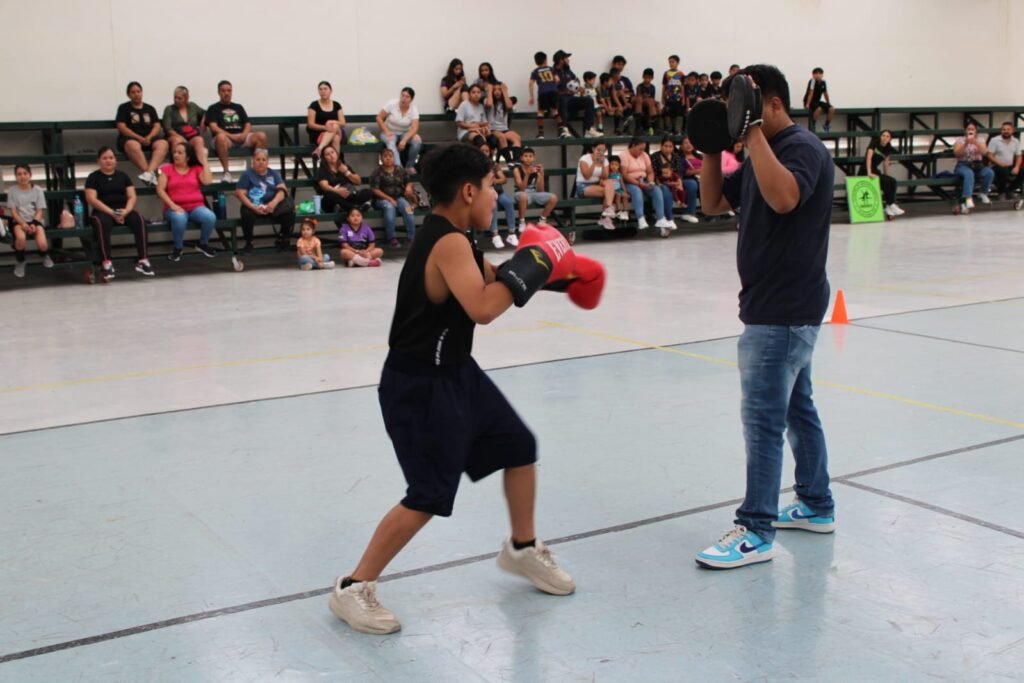 Gimnasio Guerrero; quien presentó una emocionante exhibición de boxeo con niños de 8 y 10 años, bajo la guía del instructor Giovanni Guerrero Rendón.