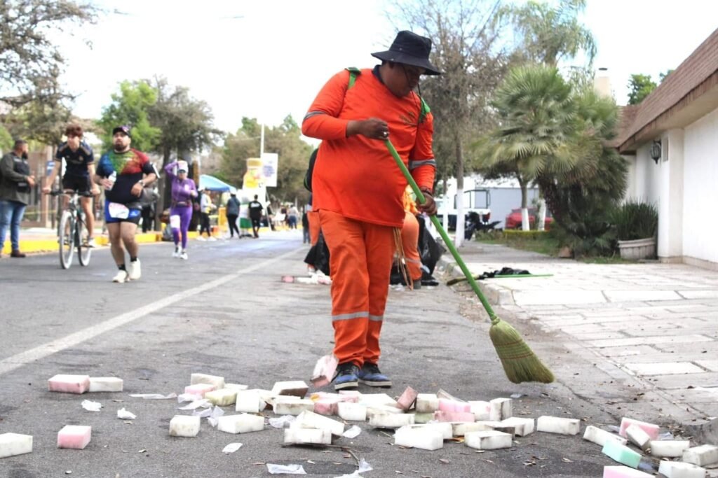 Fernando Villarreal Cuéllar, director general de la dependencia, indicó que las cuadrillas de limpieza trabajan intensamente para recibir a corredores, acompañantes y locales, garantizando que el trayecto de la competencia y las áreas aledañas luzcan en óptimas condiciones antes, durante y después del evento.