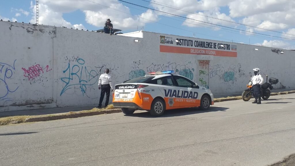 Torreón, Coahuila.- El velador de una bodega desocupada fue auxiliado por tres elementos de la Dirección de Tránsito y Vialidad de Torreón, cuando les pidió ayuda tras darse cuenta que un sujeto había trepado al techo del inmueble para hurtar las láminas.