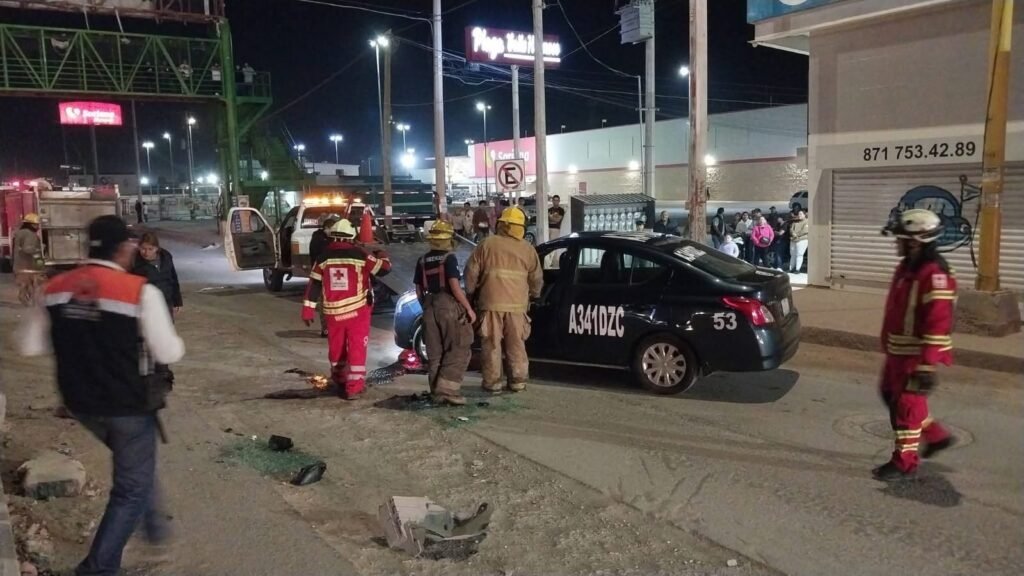 Matamoros, Coahuila.- Un taxi se volcó a la entrada de Matamoros, a la altura del puente Luis Donaldo Colosio, frente a un centro comercial, no hubo lesionados.