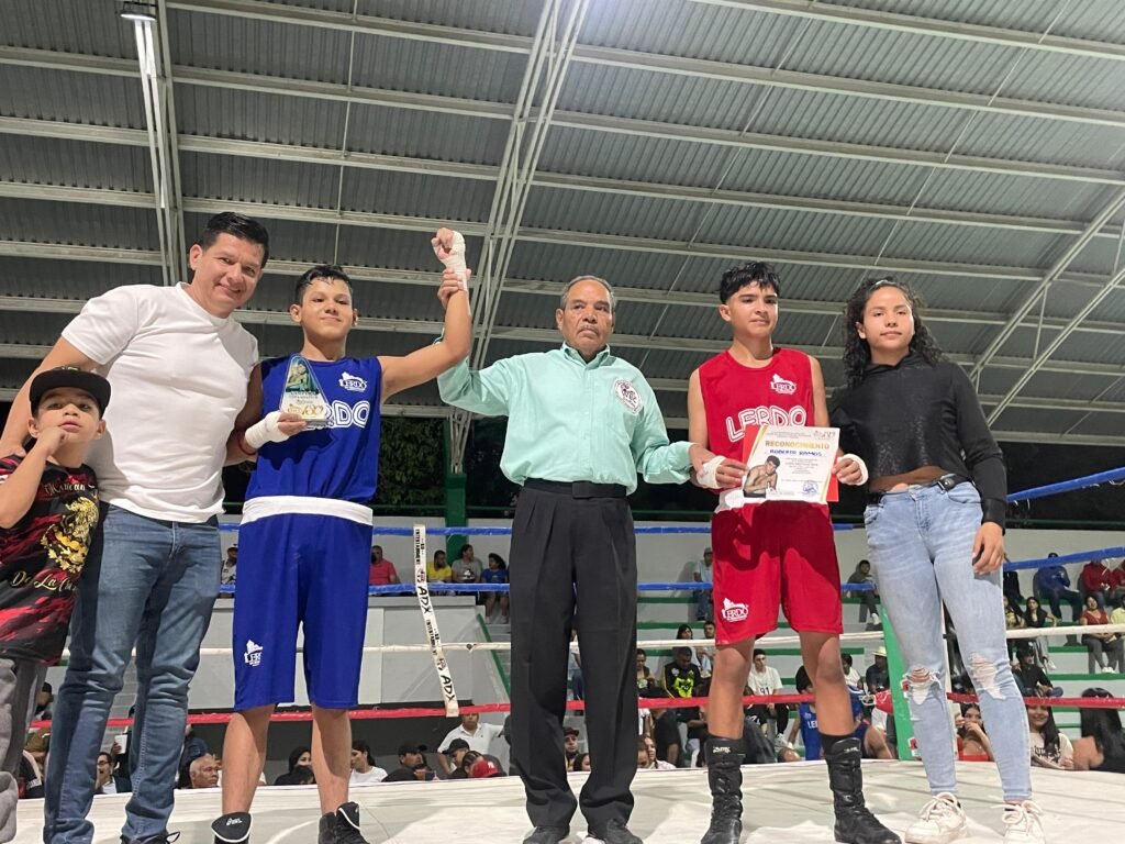 Lerdo, Durango.- El pasado domingo por la tarde, el domo del Parque Victoria en Lerdo fue el escenario de la función de boxeo «Copa Lerdo», organizada por el Instituto Municipal del Deporte (IMD) como parte de las actividades conmemorativas del 130 Aniversario de la Ciudad. Los asistentes disfrutaron de más de 20 combates amateur, destacando el talento de los gimnasios locales.